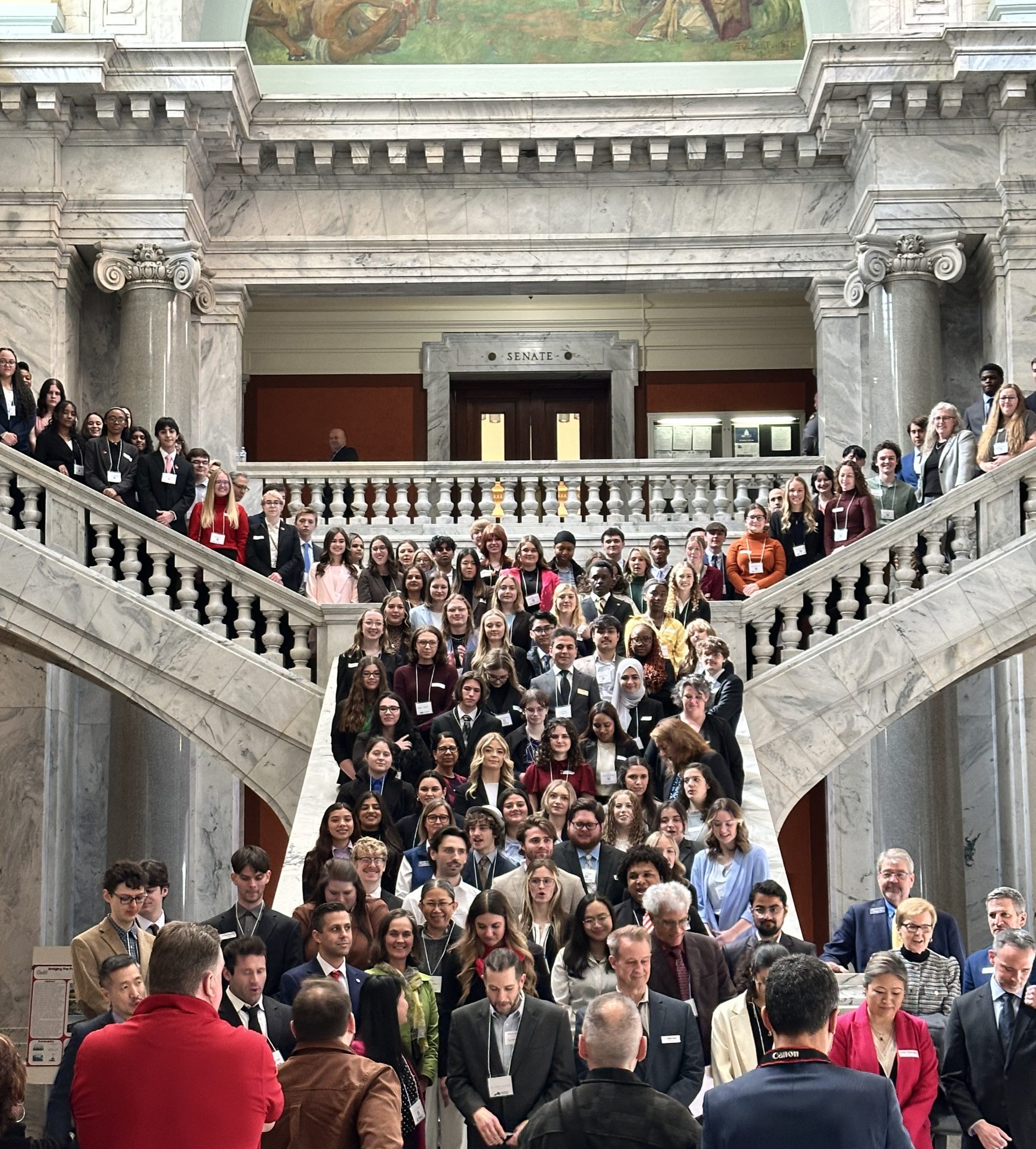 The 23rd Annual Posters-at-the-Capitol event took place March 6, 2025. This statewide event is organized to help those responsible for higher education funding in Kentucky better understand the important role that undergraduate research plays in the education of our students. KY Chapter Fulbrighters, Jane McEldowney Jensen and Catherine Harbour visited with the potential future Fulbrighters and their advisors, including KY Chapter member Sarah Belcher representing the University of Louisville.