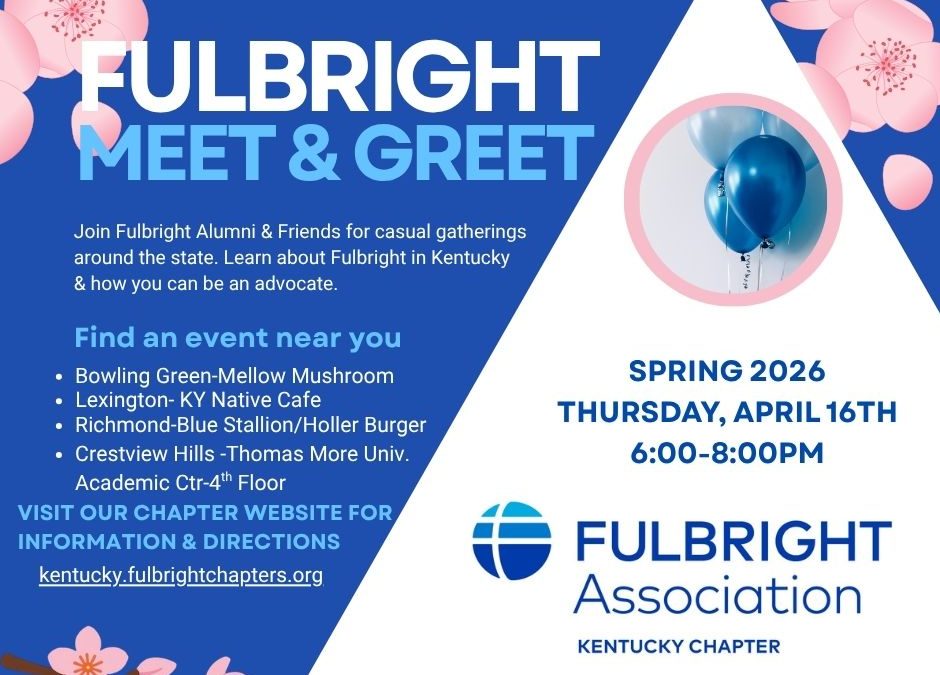 Learn about Fulbright in Kentucky and how you can be an advocate.  Bring a friend and invite a visiting scholar!